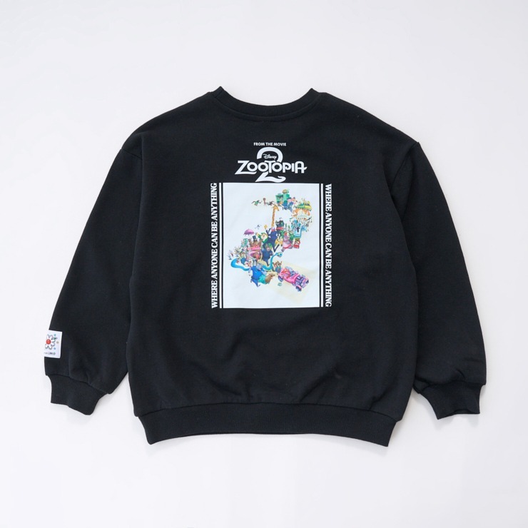 フロントには刺しゅうをあしらい、バックにキャラクターがプリントされた裏毛素材のトレーナーです。
