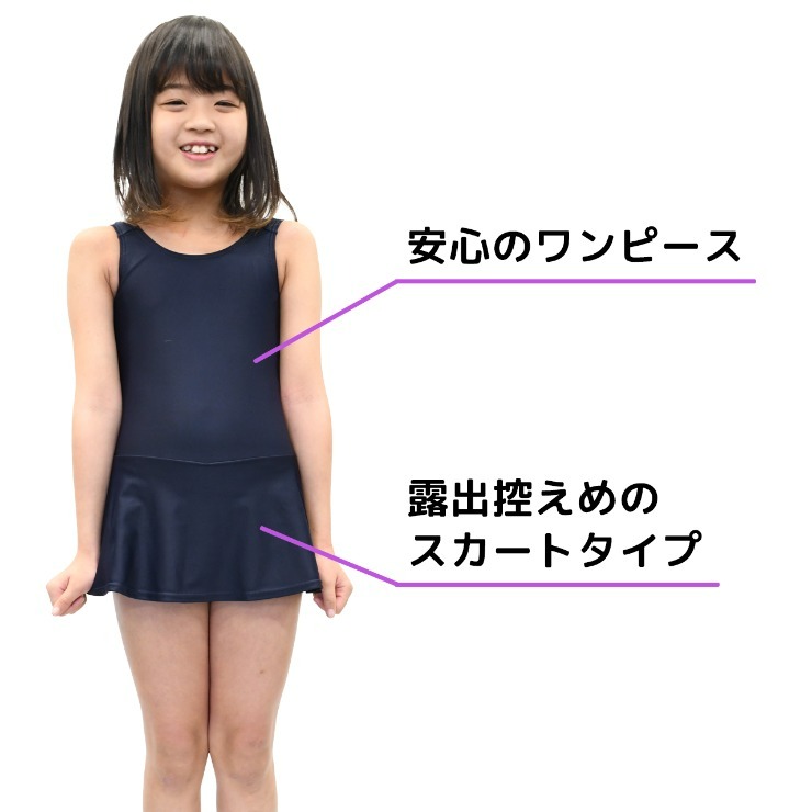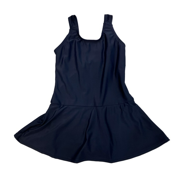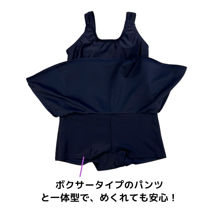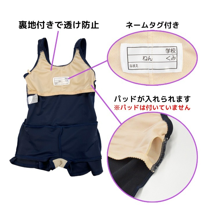 シンプルなワンピースのスクール水着。パッドが入れられる裏地付き。※パッドは付いていません。