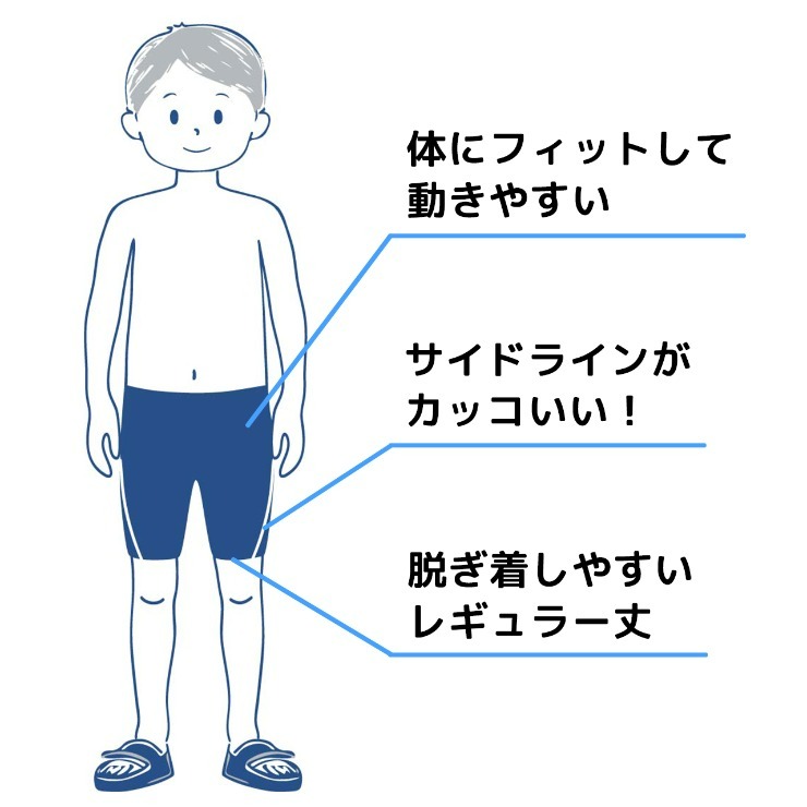 サイドラインがポイント◎レギュラー丈スクール水着。