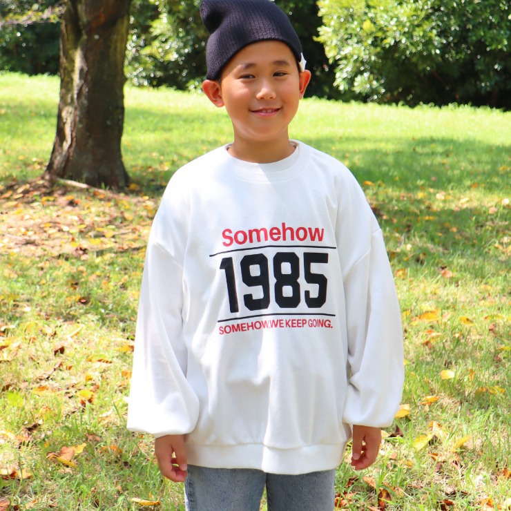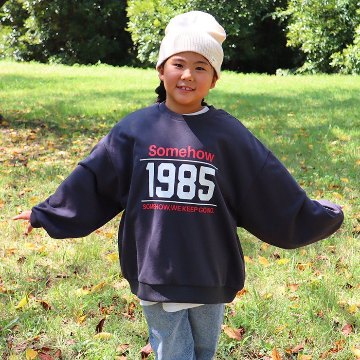 レトロなロゴデザインが魅力のオーバーサイズスウェット。