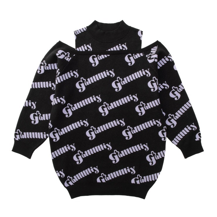 オフショルダーデザインがおしゃれな、総柄ジャガードニットプルオーバーです。