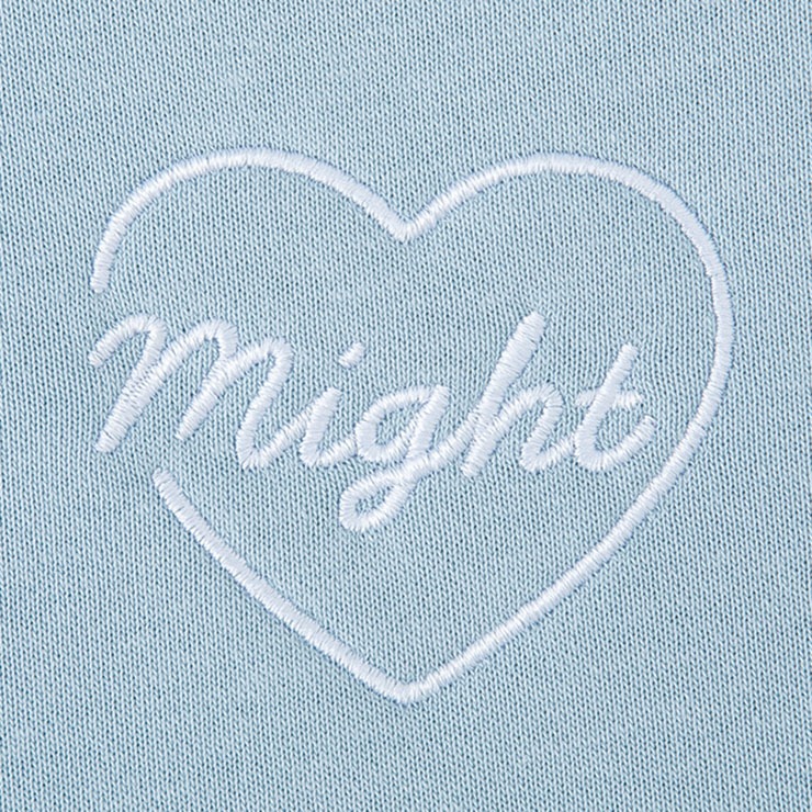 フロントとバックにハートロゴ刺しゅうをあしらったガーリーなデザインでおしゃれ度をグッと高めてくれます。