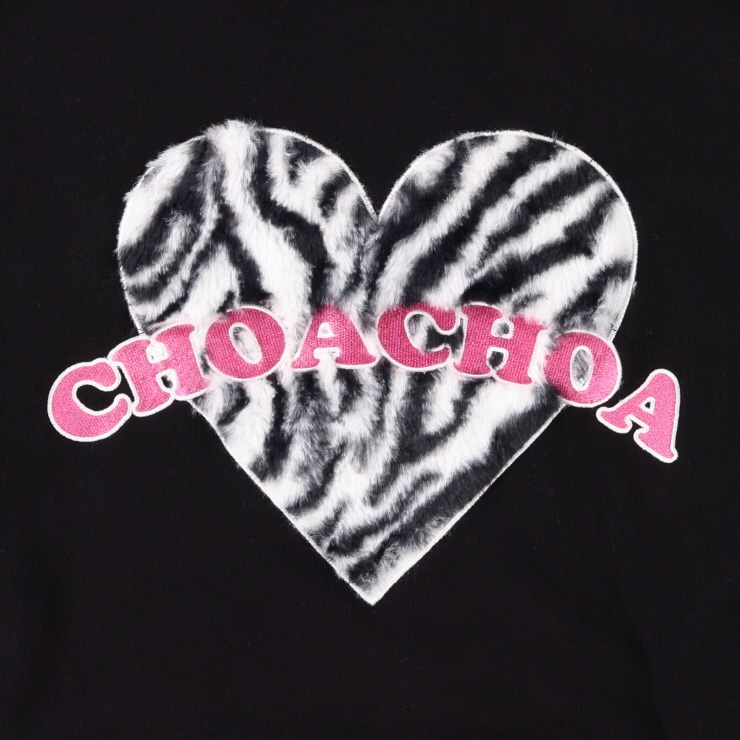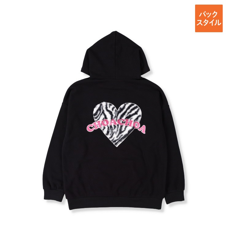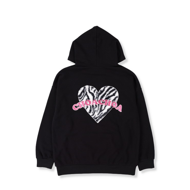 ハートのゼブラ柄ファーが目を引くプルパーカーです。