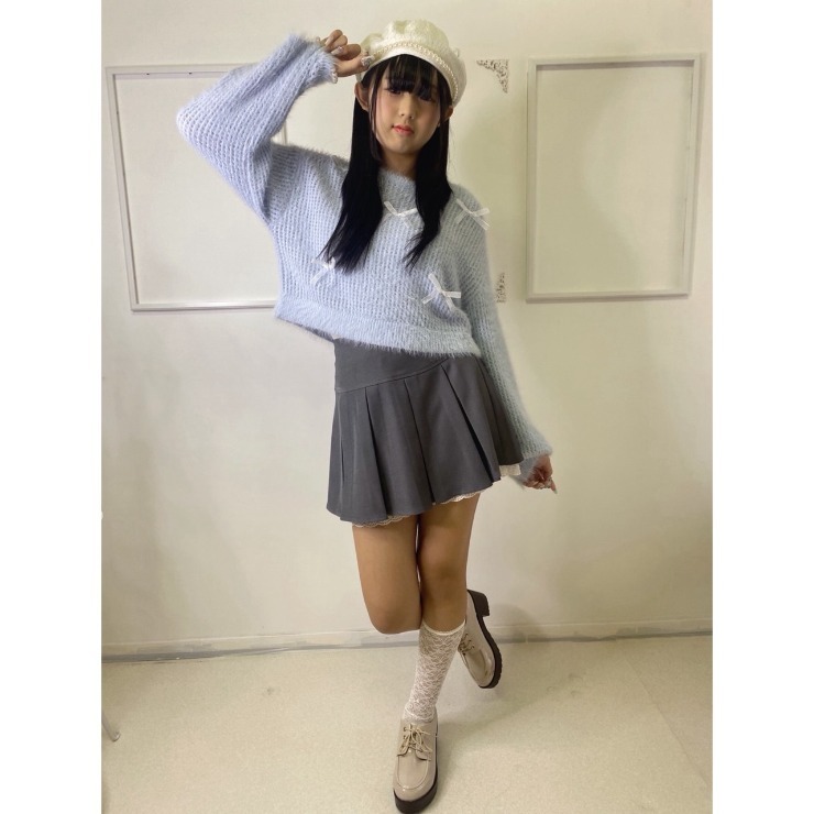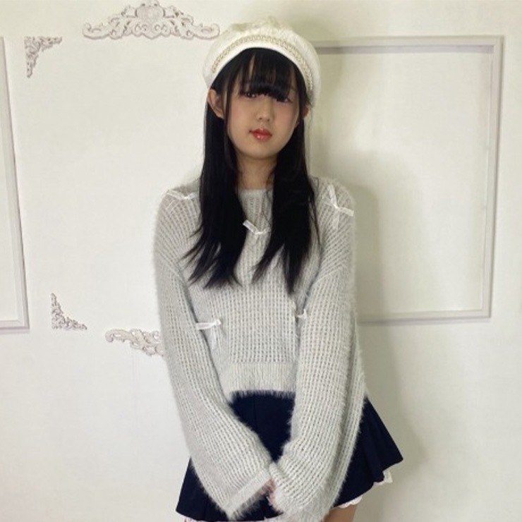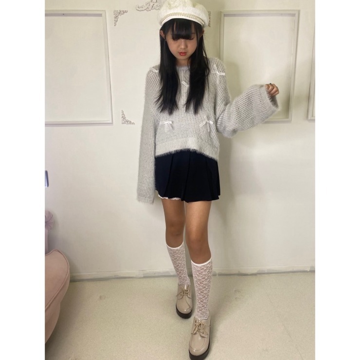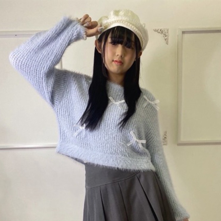 ふわふわのシャギーニットに、立体的なリボンを散りばめたデザインがとびきりキュート!