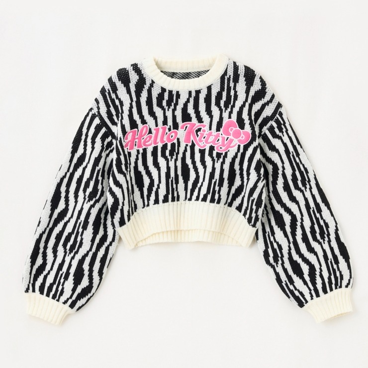アニマル柄とハローキティロゴが存在感たっぷり主役級ニットプルオーバー。
