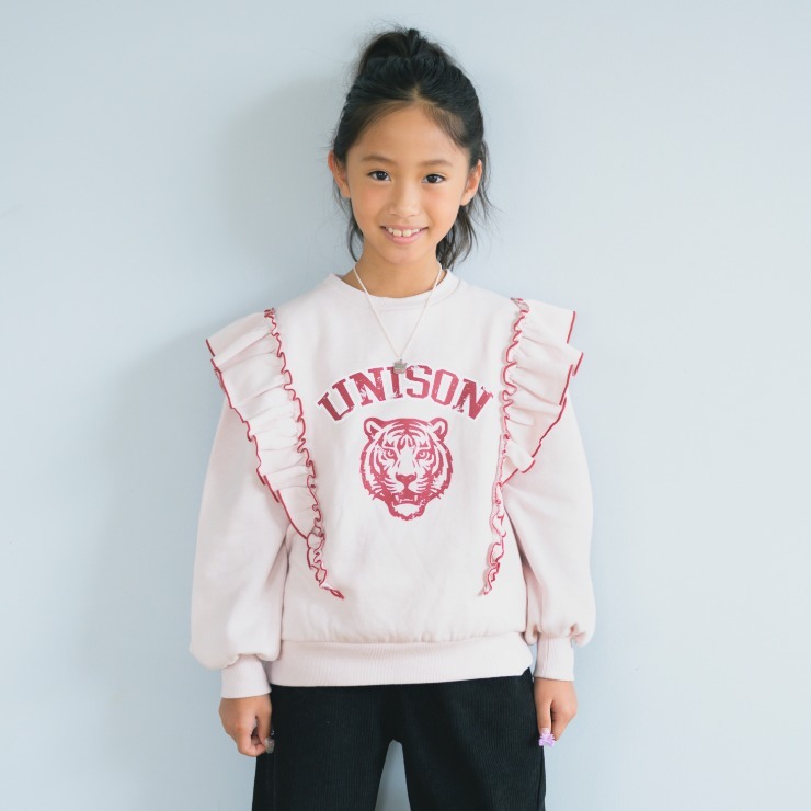 トラのプリントがかわいい、裏起毛のトレーナーです。