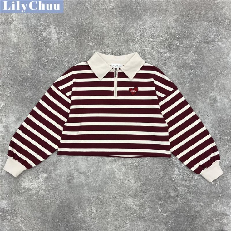 ボーダー柄の襟付きハーフジッププルオーバーです!