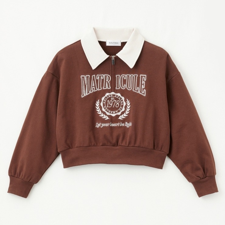 カレッジテイストの刺しゅうを襟と同色で合わせ、