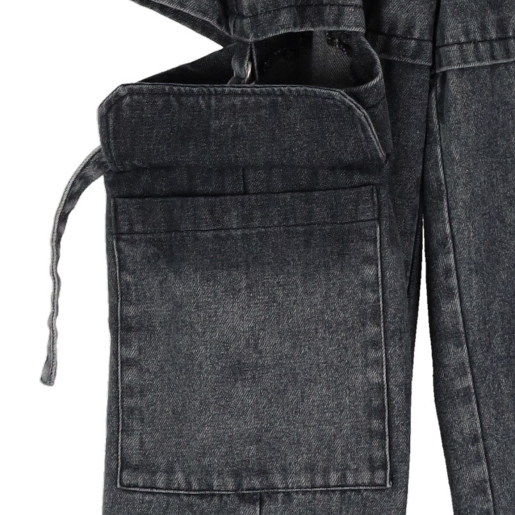 ケミカル加工とサイドのスリットがかっこいいデニムロングカーゴパンツです。