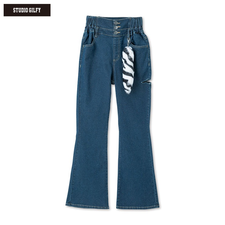 【STUDIO GILFY】からしっぽ付きフレアデニムパンツが登場。