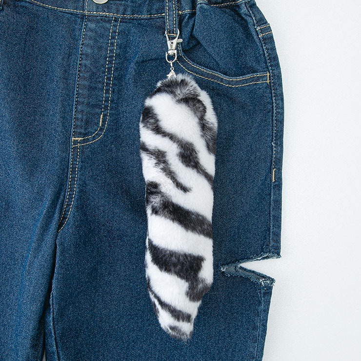 ゼブラ柄のしっぽは、パンツやバッグに付けておしゃれしよう。
