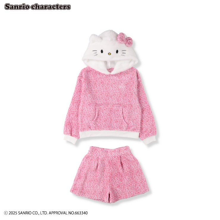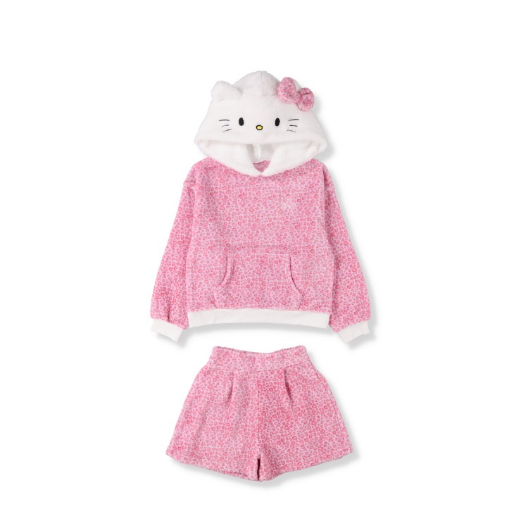 ハローキティの耳付きフードがかわいいボアプルパーカーとショートパンツのセットです。