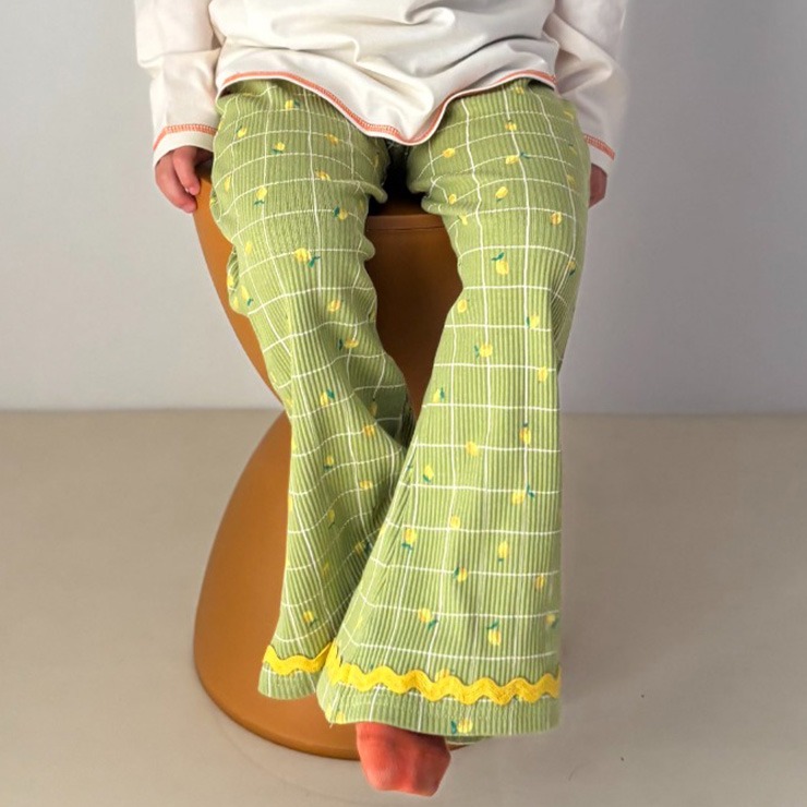 格子柄×レモンで男の子も女の子も履きやすい落ち着いた色味のパンツです。