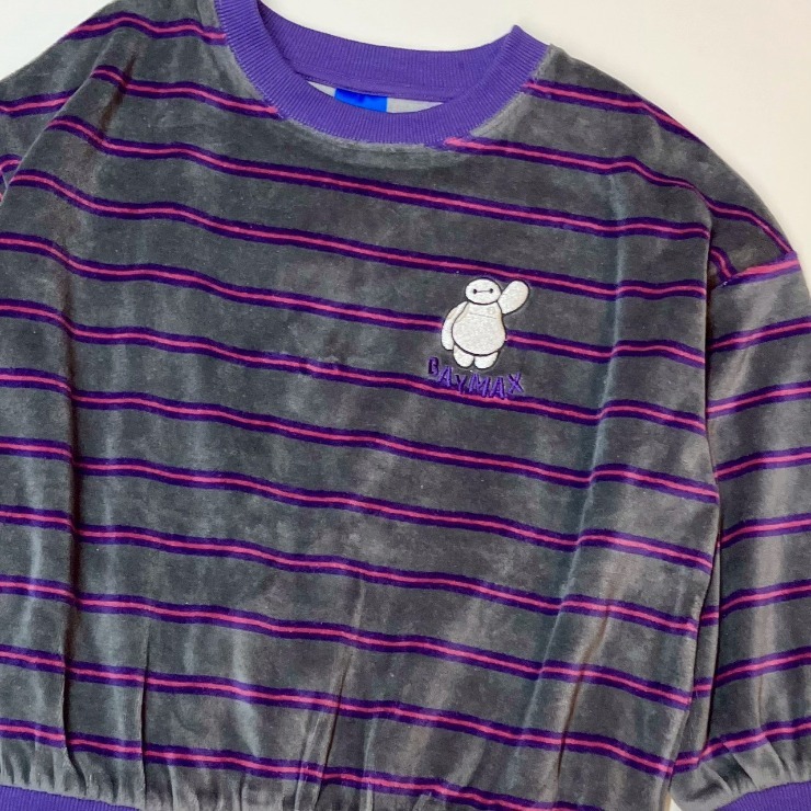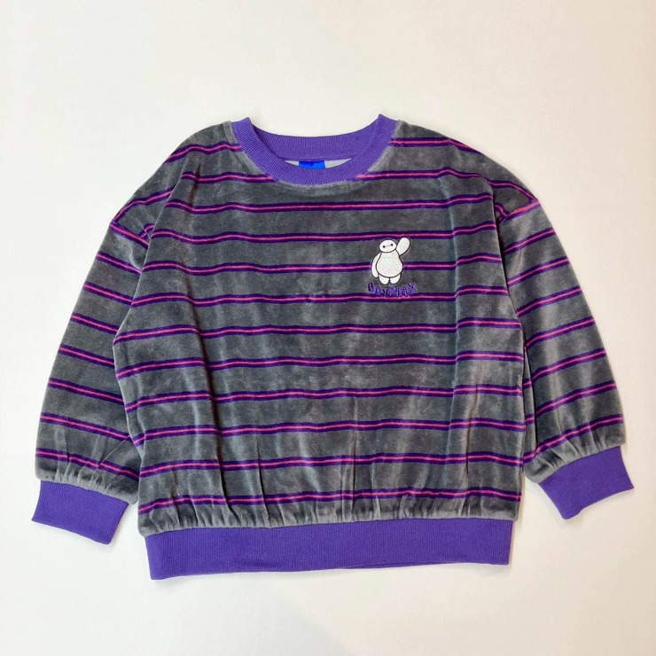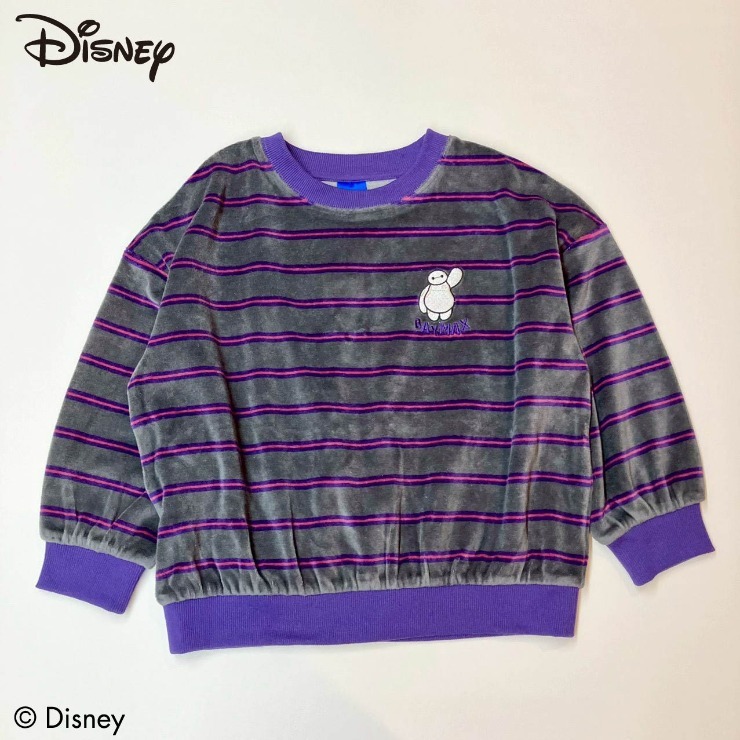 人気ディズニーキャラクターのワンポイント刺繍が可愛い、ボーダートレーナーをご紹介!柔らかく光沢があり、保温性に優れた綿ベロア素材を使用しています。