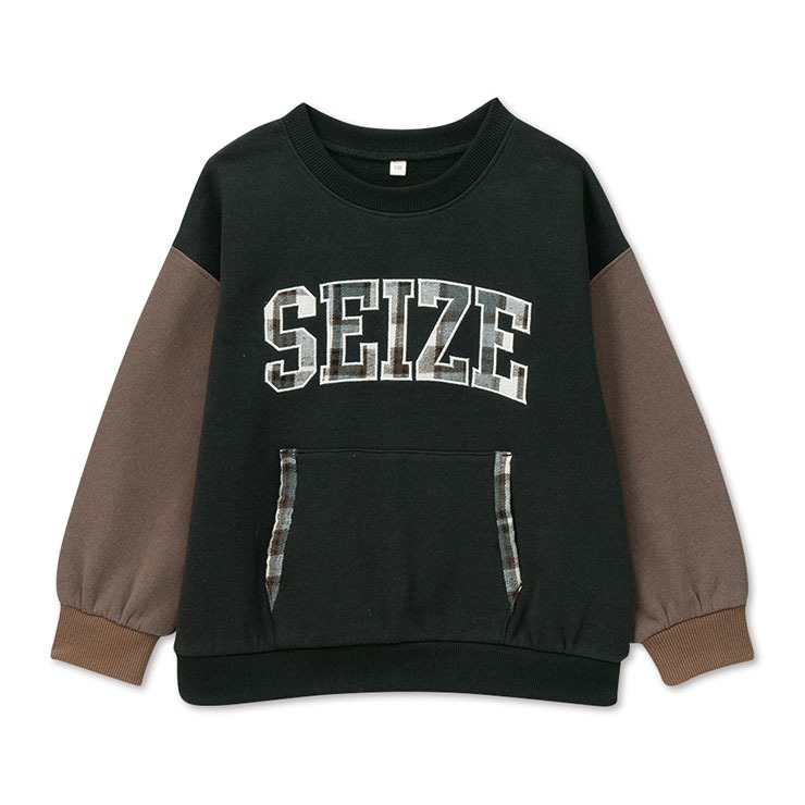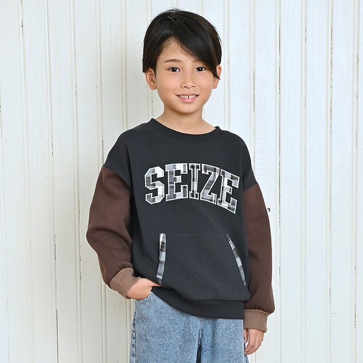 チェック柄生地のロゴ刺繍とポケットが目を惹くワイドシルエット裏起毛トレーナーです。