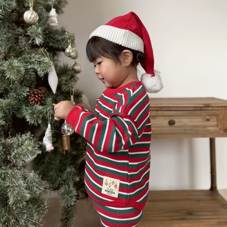 人気のリブ素材にクリスマスカラーのボーダーを載せました!
