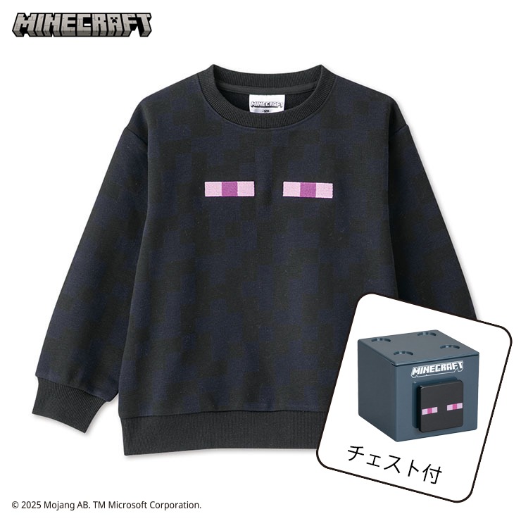 大人気【マインクラフト】からトレーナーが登場★人気キャラ・エンダーマンのトレードマークである黒色が可愛い1枚♪顔も大きくプリントされています!人気のチェストもおまけで付いてくる、絶対に見逃せないアイテムです♪
