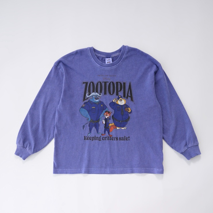 ズートピアのキャラがプリントされた、天竺素材の長袖Tシャツです。