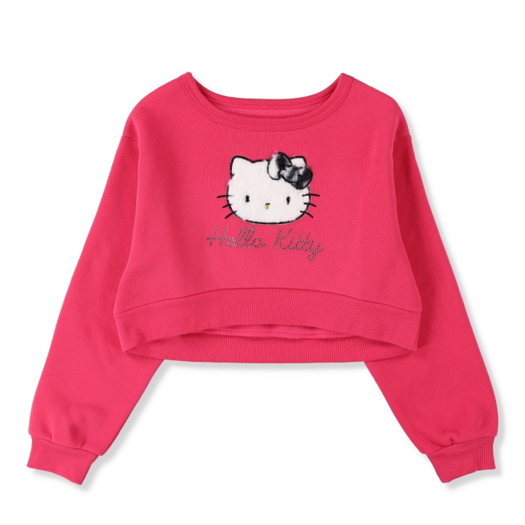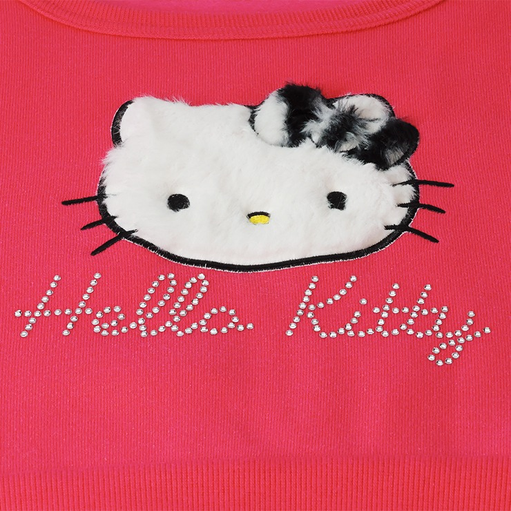ふわふわのファーのハローキティがかわいいトレーナーです。キラキラのラインストーンのロゴもかわいい!裏起毛素材であたたかいです。