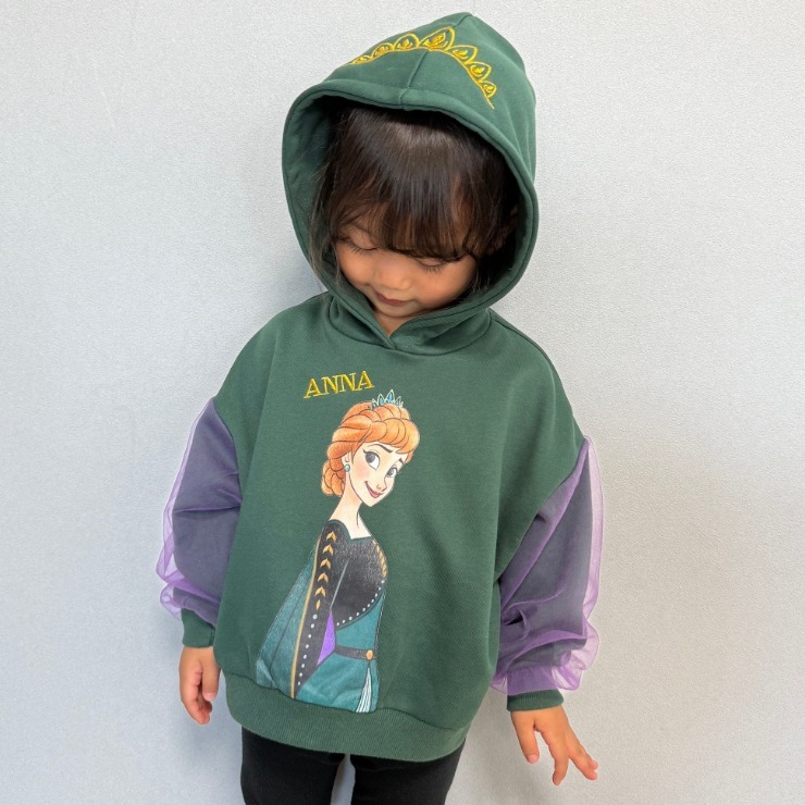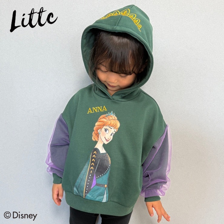 アナのプリントがかわいい、裏毛素材のトレーナーです。
