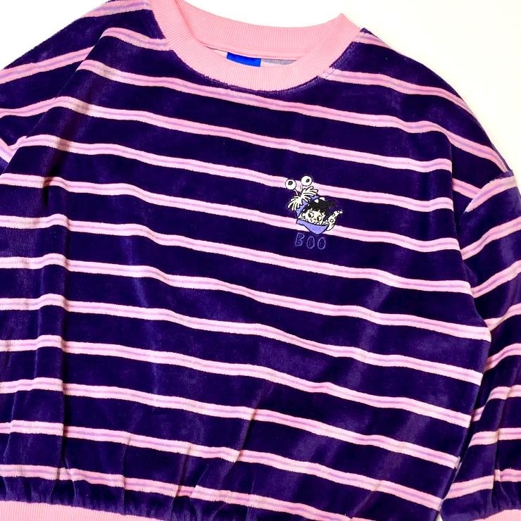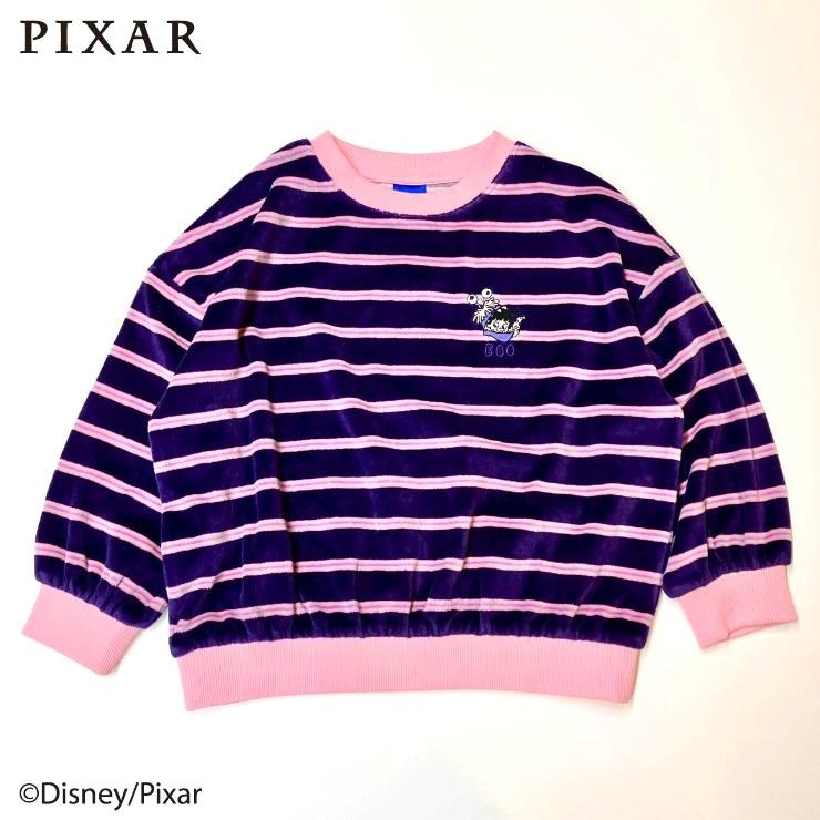 人気ピクサーキャラクターのワンポイント刺繍が可愛い、ボーダートレーナーをご紹介!柔らかく光沢があり、保温性に優れた綿ベロア素材を使用しています。