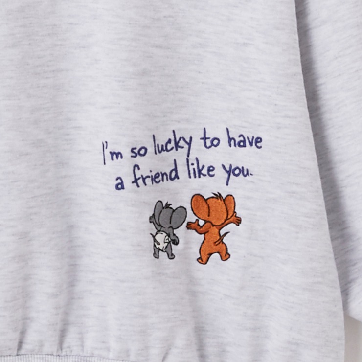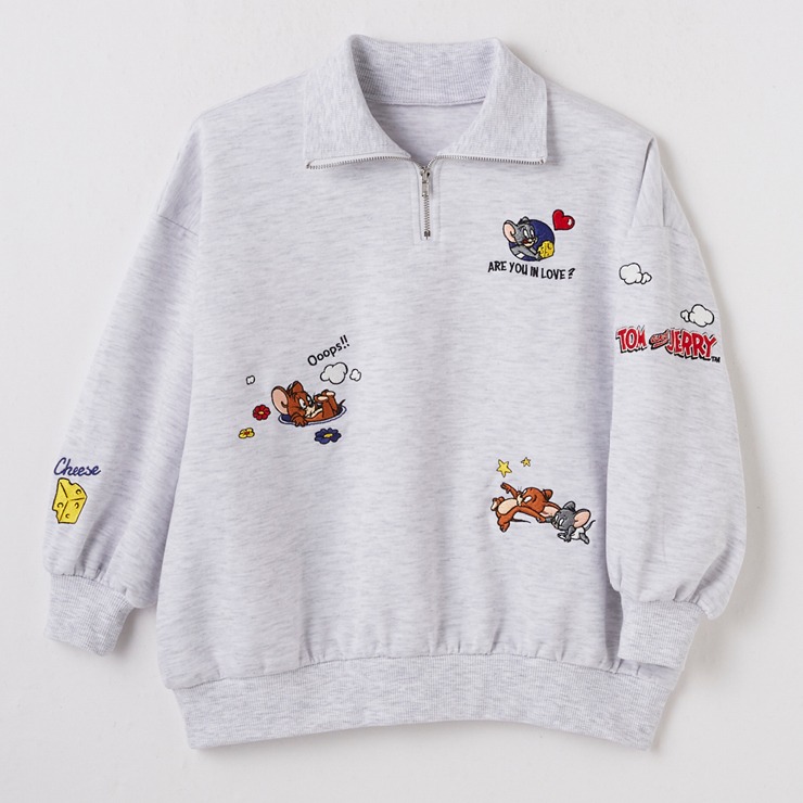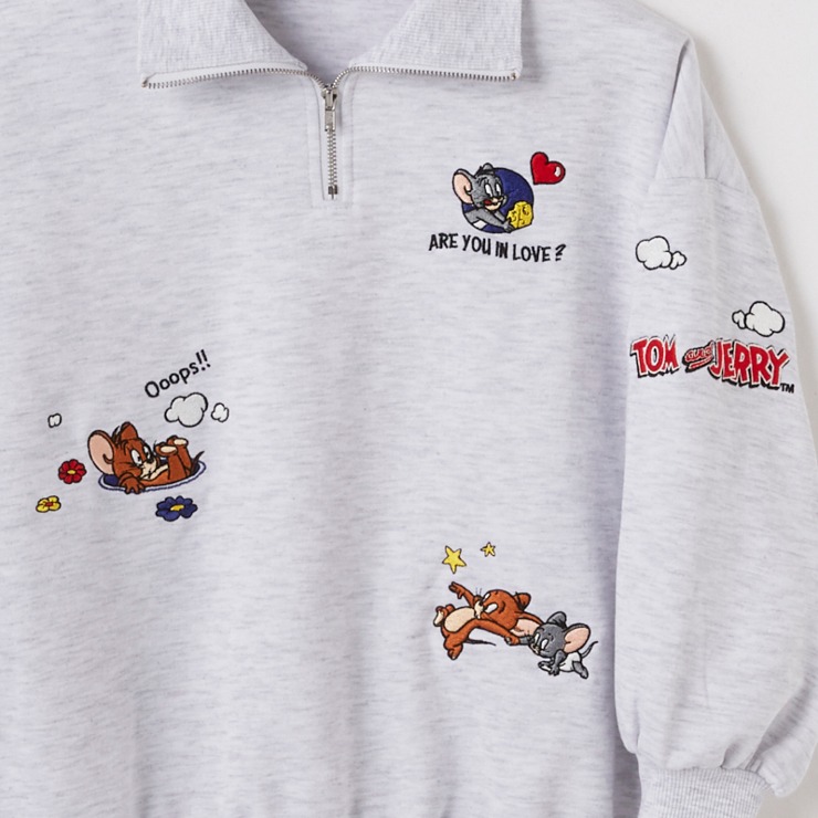 「トムとジェリー」のししゅうがかわいいハーフジッププルオーバーです。