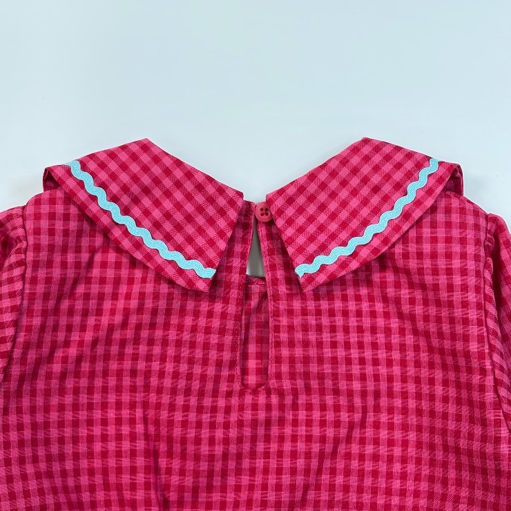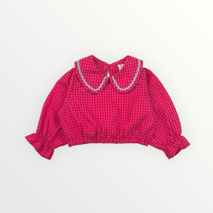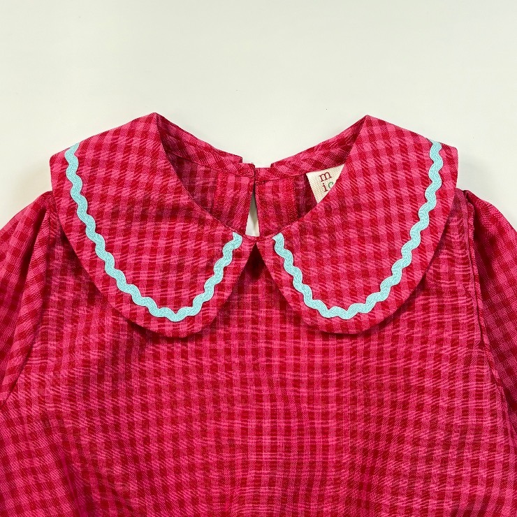 Red×pinkのギンガムチェックがかわいいブラウスです。