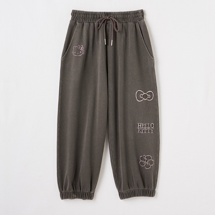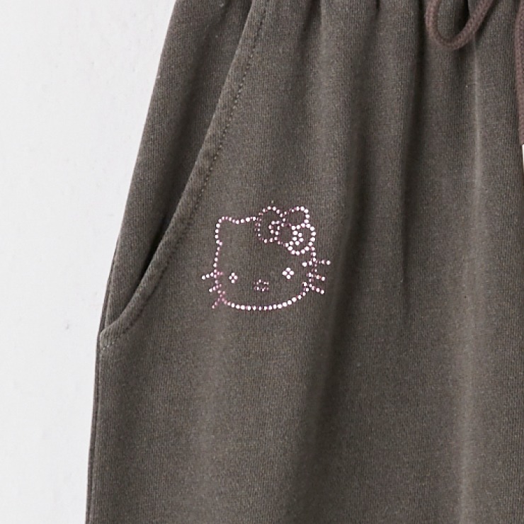 キラキラのラインストーンやししゅうがかわいい「ハローキティ」のスエットパンツです。ヴィンテージ風の加工がおしゃれ。