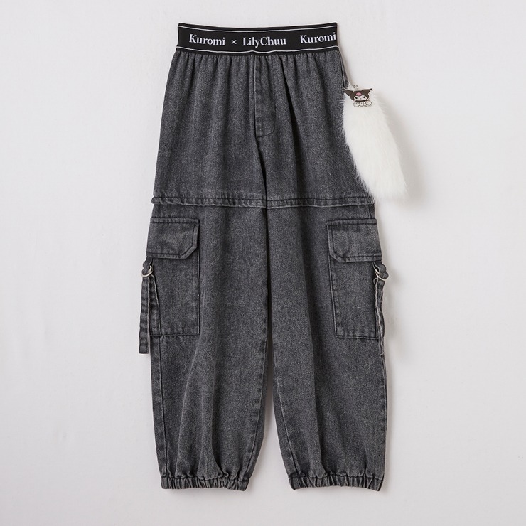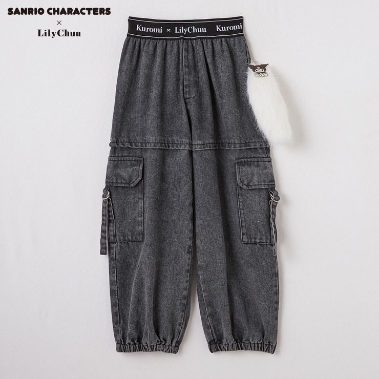 クロミ×Lily Chuuのデニムカーゴパンツです。クロミのチャーム付きしっぽがかわいい!