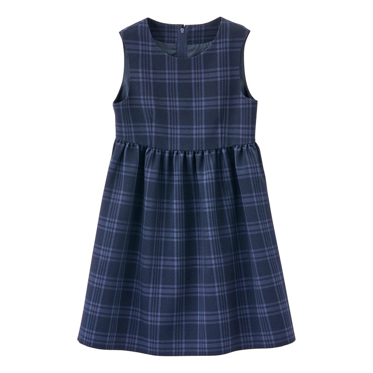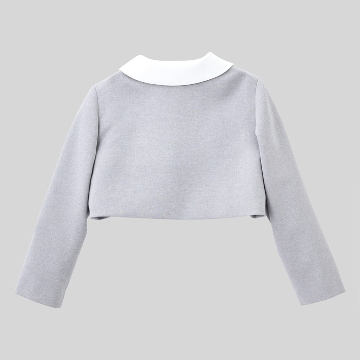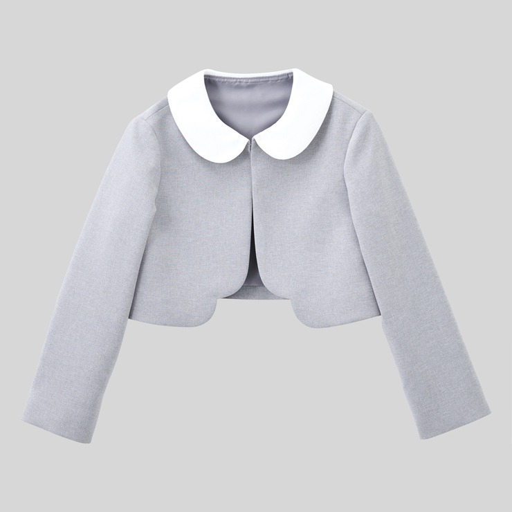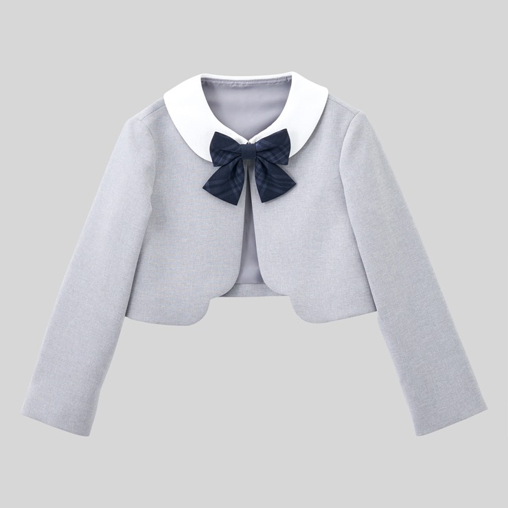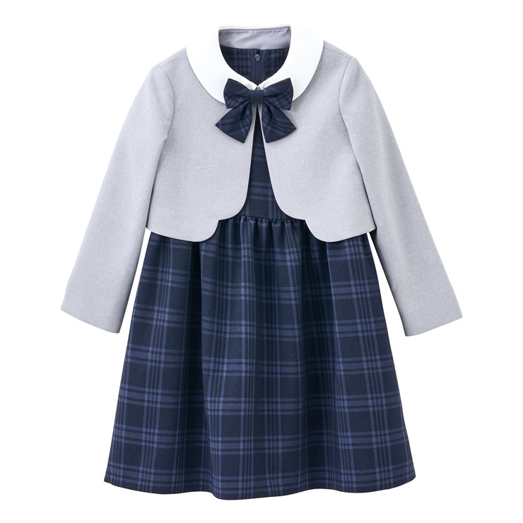 チェック柄のジャンパースカートにグレーボレロを合わせたアンサンブルです。