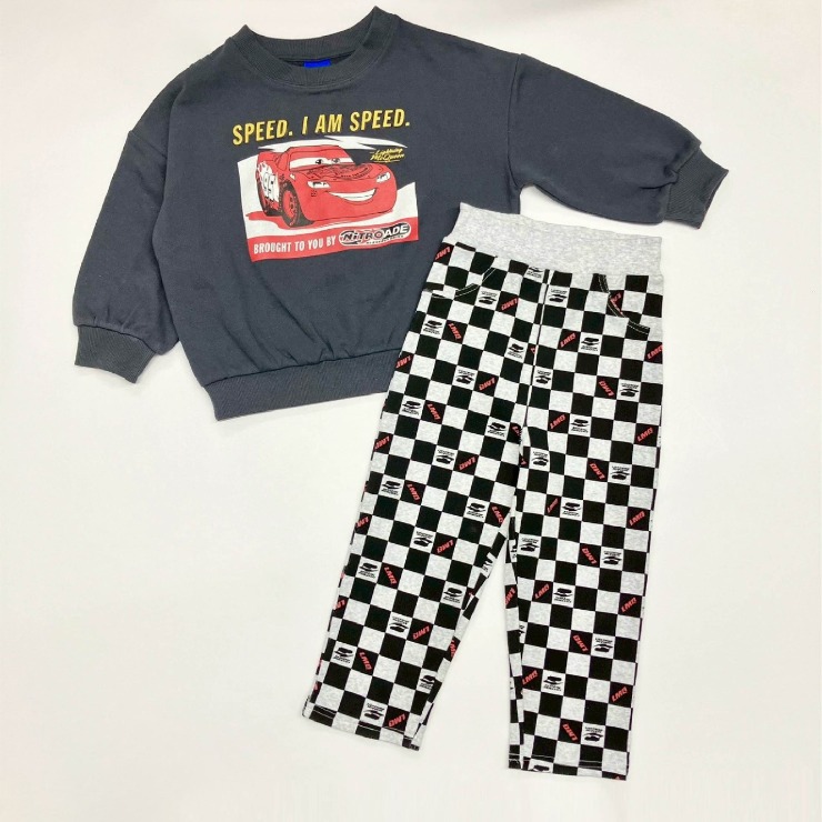 ピクサーより、カーズのマックイーン×チェッカー柄MIXのトレーナー+レギンスセットをご紹介!