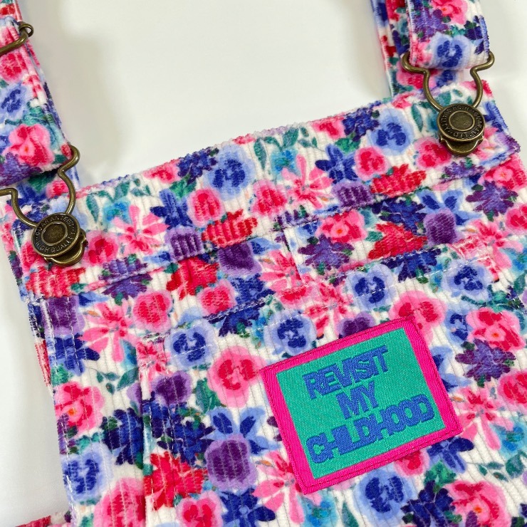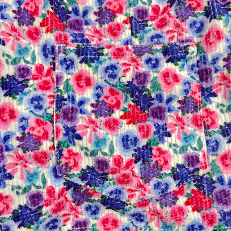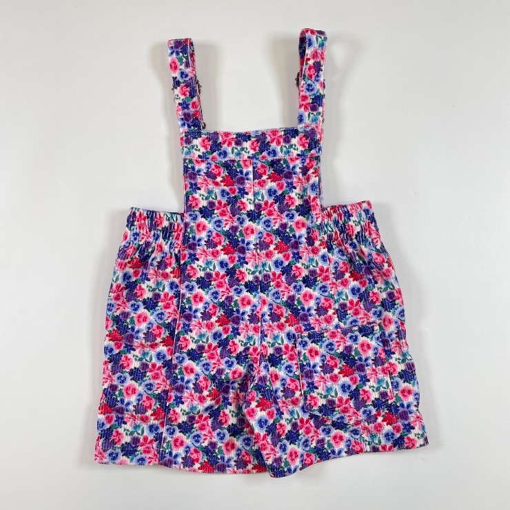 ヴィンテージライクな花柄のコーデュロイのサロペットです。