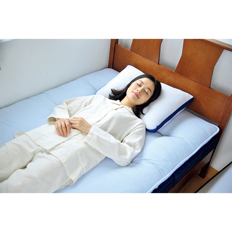上層部のプロファイルウレタンでで体圧分散、下層部の固めのわたでしっかり支えます。