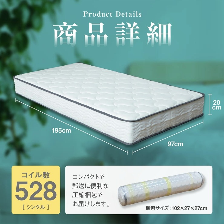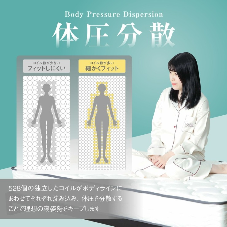 独立した528個のポケットコイルが揺れや振動を軽減し、快適な寝心地をサポート。