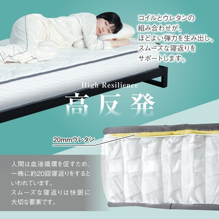 コイルとウレタンが生み出す弾力性が、スムーズな寝返りをサポート。