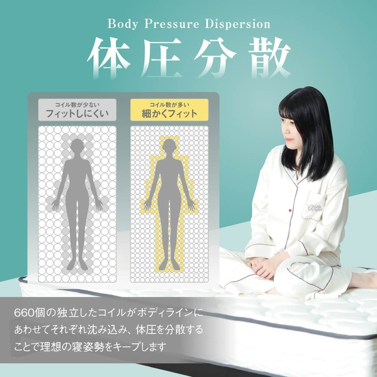 独立した660個のポケットコイルが揺れや振動を軽減し、快適な寝心地をサポート。
