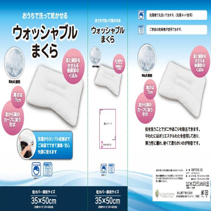おうちで洗って乾かせるウォッシャブル枕です。