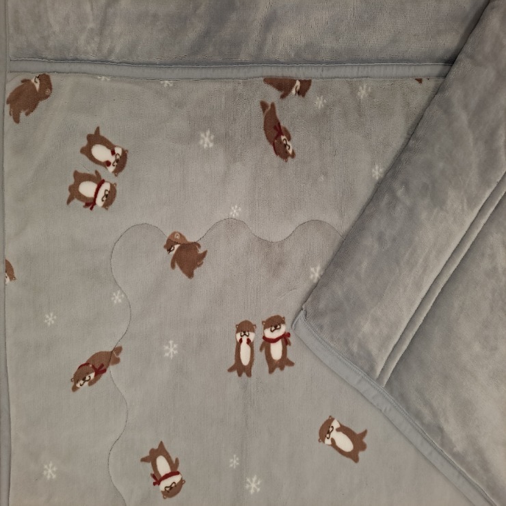 わた入り毛布(シングルロングサイズ・FIBER HEAT)カワウソ柄