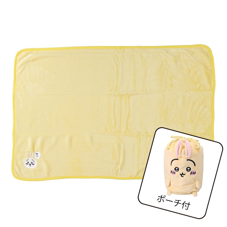 うさぎがデザインされた、収納用巾着付きのブランケットです。