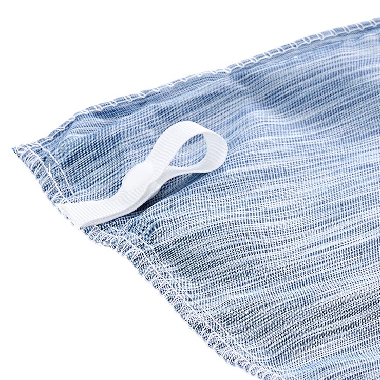 スリット入りでふとんを入れたあとでも外からスナップボタンを止められます。