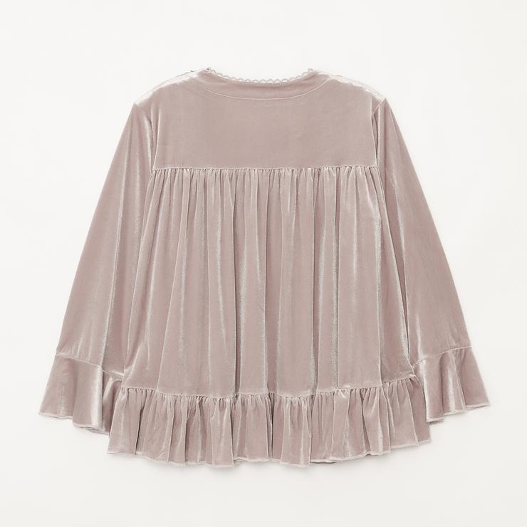 ベロア生地はストレッチ性があり、身幅やギャザー分量多めのゆったりした着心地です。