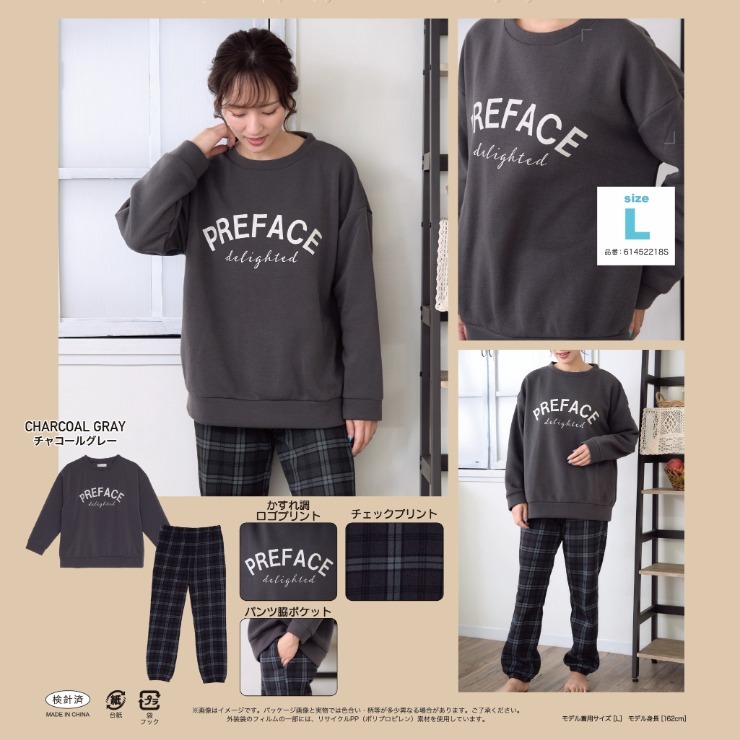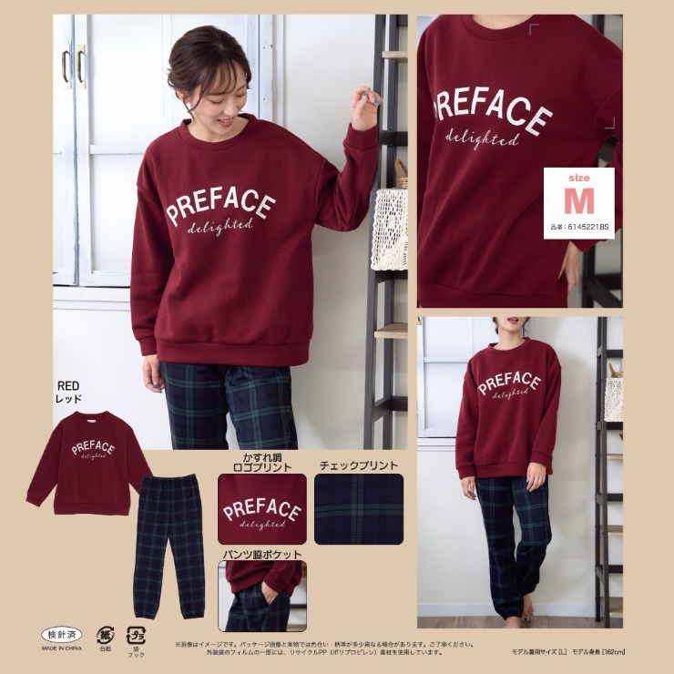裏起毛のトップスとボトムスがセットになったルームウェア