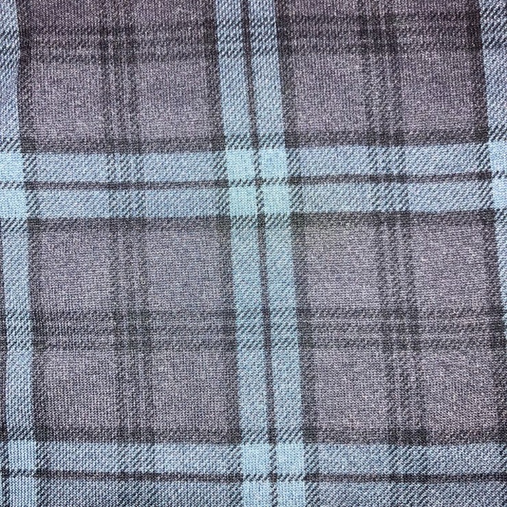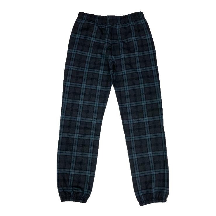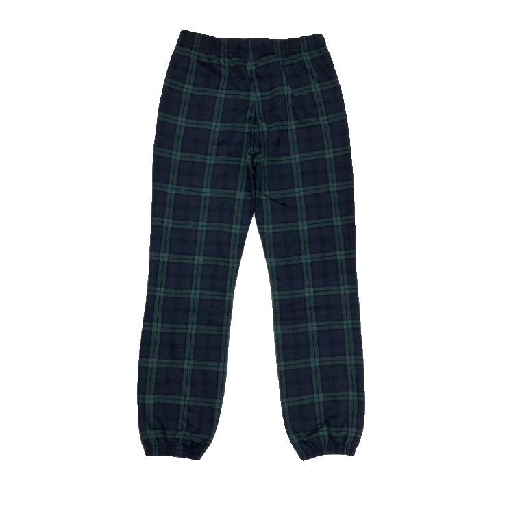 ボトムスはチェック柄で、裾にゴムの入ったデザイン。
