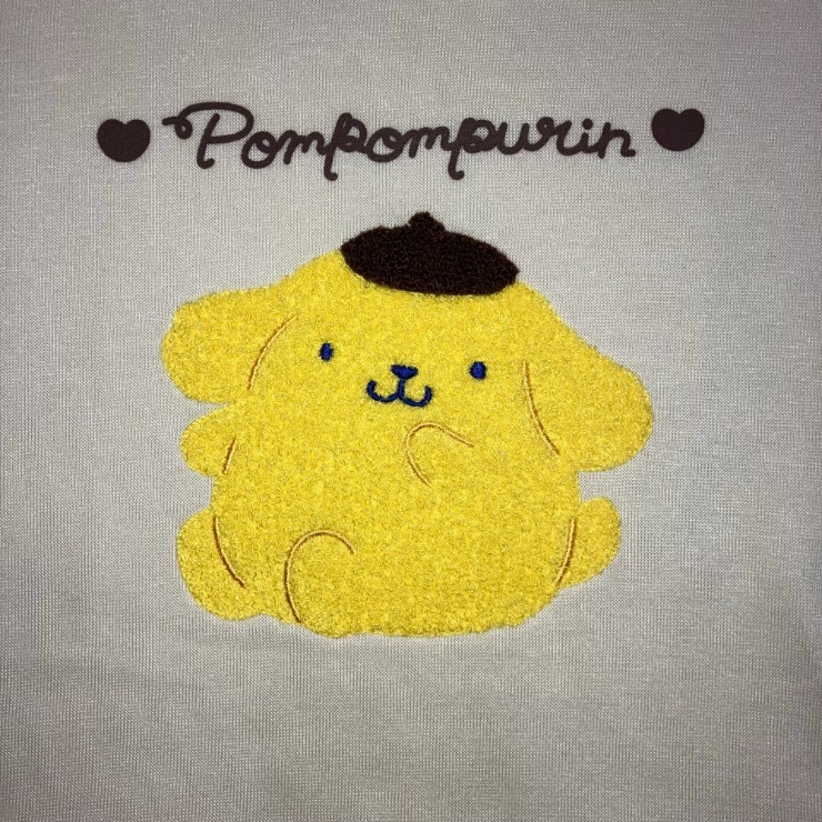 ポムポムプリンのもこもこさがら刺繍+プリント入りのルームウェアです。
