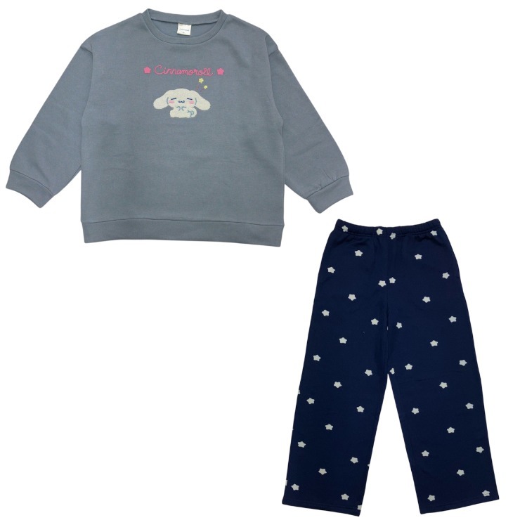 シナモロールのもこもこさがら刺繍+プリント入りのルームウェアです。