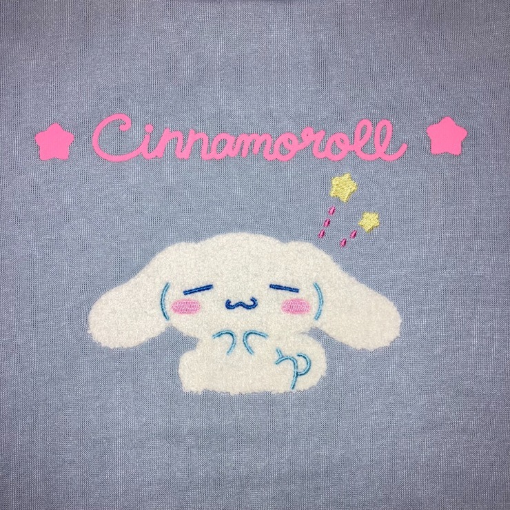 シナモロールのもこもこさがら刺繍+プリント入りのルームウェアです。