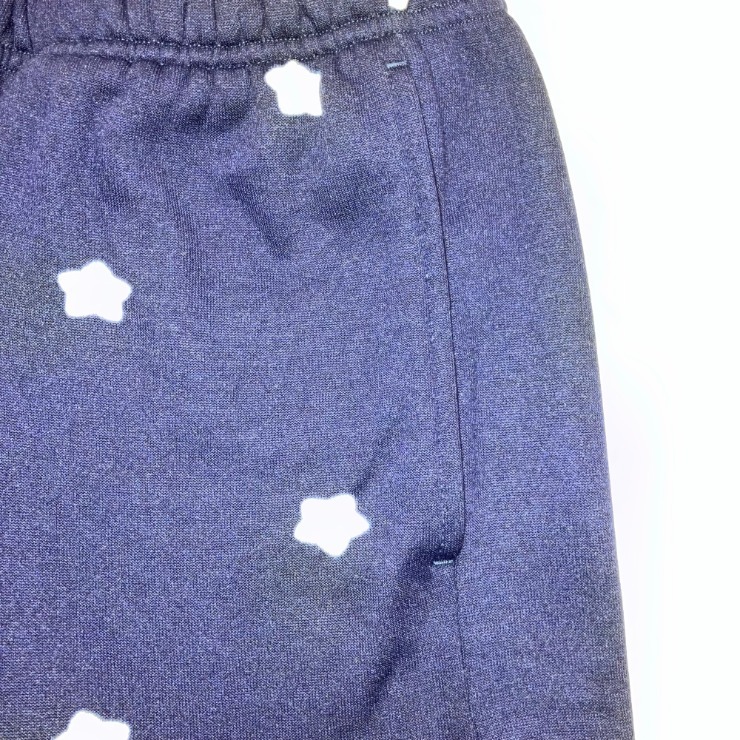 ボトムスはアイボリー色の星柄プリント。