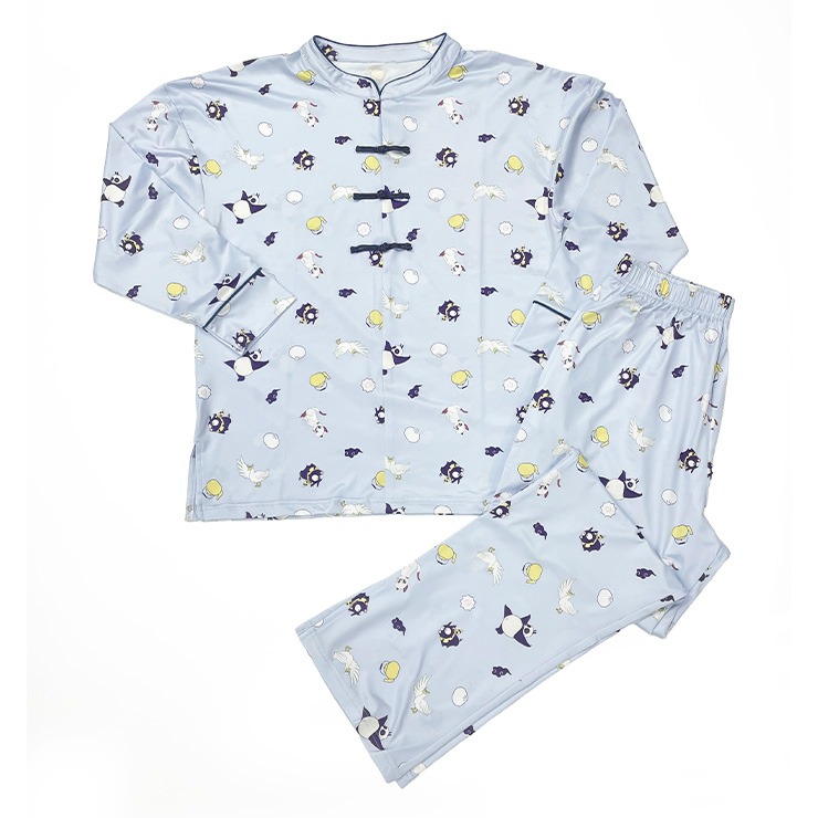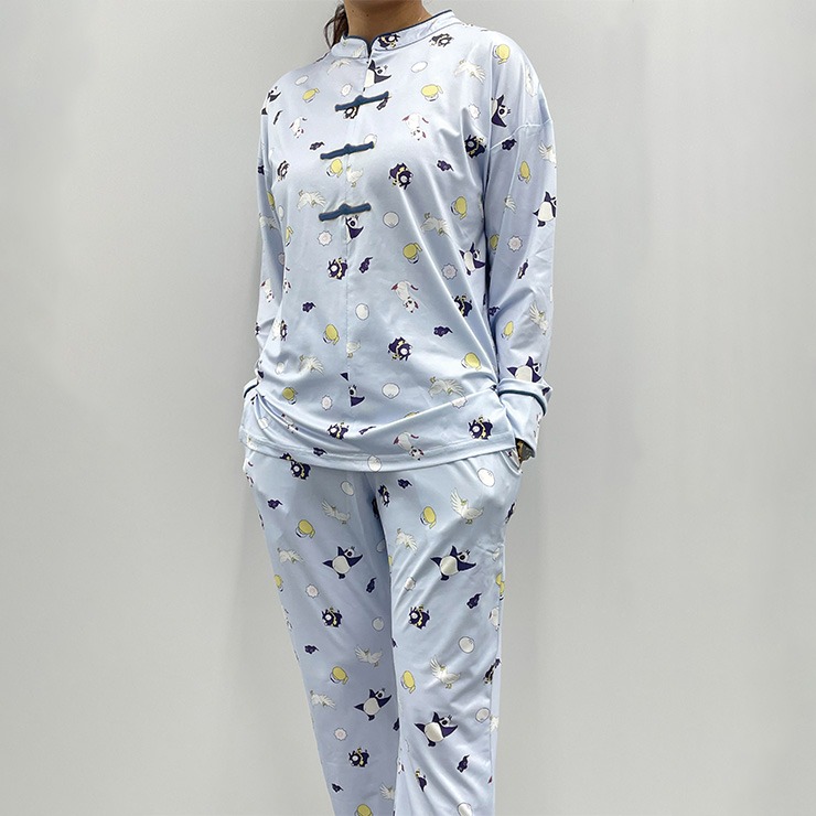 おなじみのPちゃん、シャンプー(猫)、玄馬(パンダ)だけでなく、シーズン2から登場のムース(アヒル)も加わった爽やかな長袖パジャマです。チャイナボタンは飾りになっていて着脱の際の付け外し不要。胸元のホックにて開閉可能です。