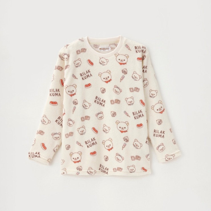フリース素材を使用しているので寒い冬でもお部屋で快適に過ごせます。トップスのリラックマの総柄プリントがとても可愛いです♪