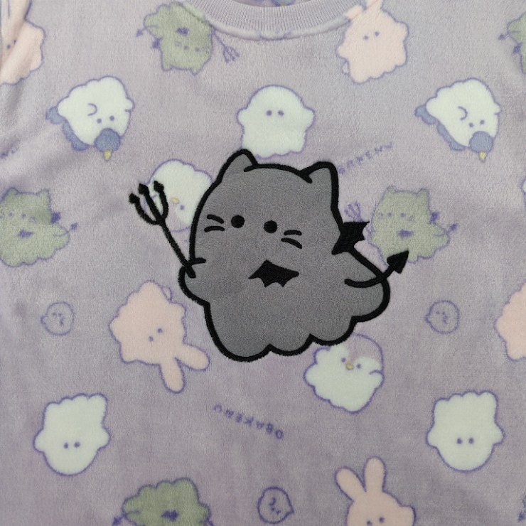総柄のデザインで、トップスにアップリケ刺繍が可愛いです♪